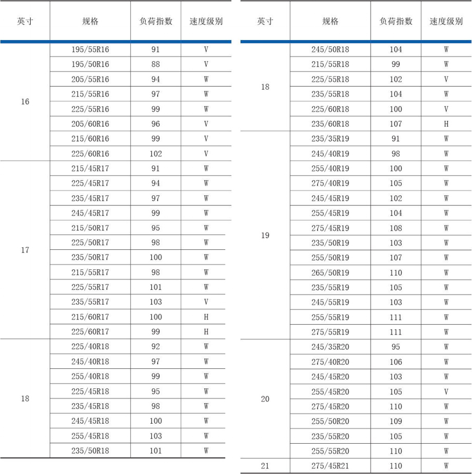 16、17、18、19、 20、21英寸